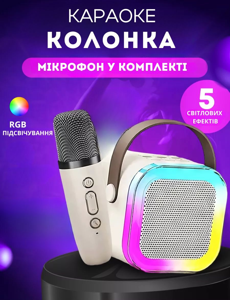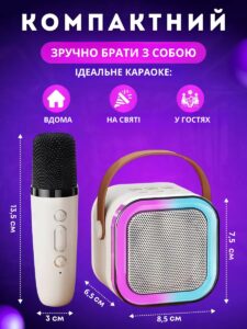 Міні-колонка і мікрофон для караоке ідеально підходить для дітей різного віку. Світлодіодні ліхтарі на стовпчику створюють веселу атмосферу. Режими підсвічування можна змінювати. Завдяки роз’єму для виходу навушників він ідеально підходить для занять співом чи сімейних вечорів караоке.